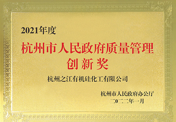 2021年5月中國氟硅行業優秀科技成果(現代高層幕墻用有機硅密封膠系列產品的研發與產業化項目)(之江有機硅)牌匾/證書