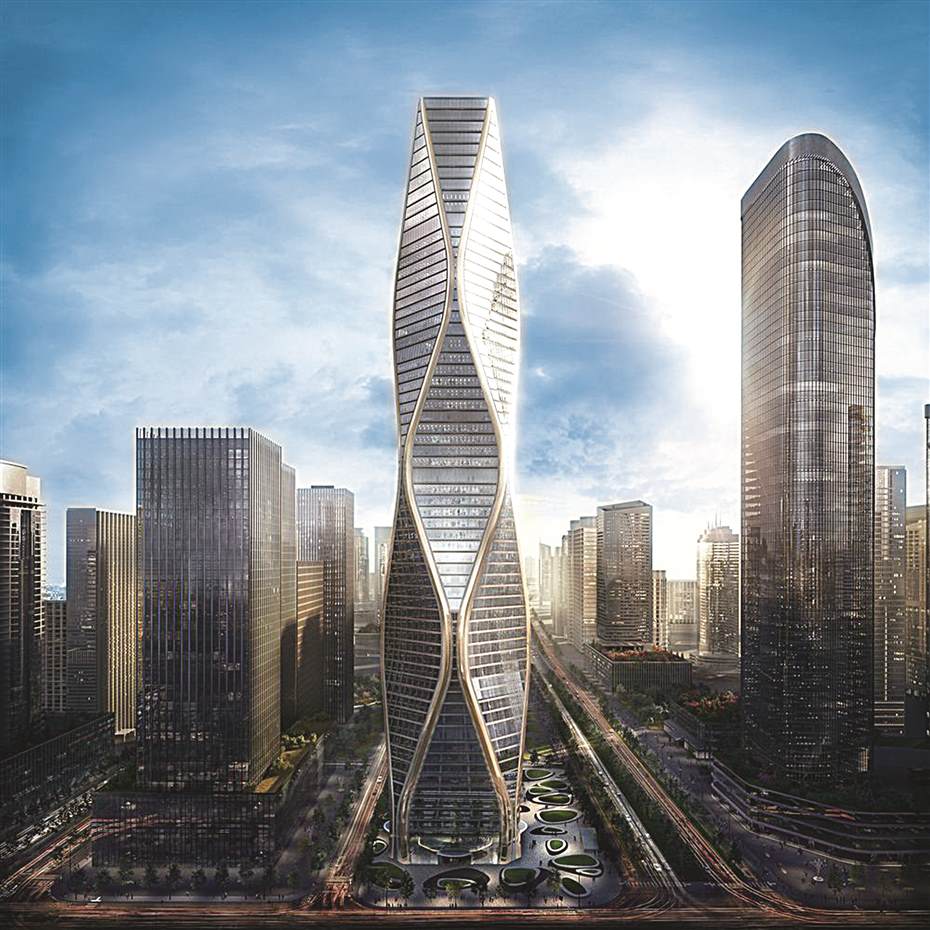 項目地處杭州錢江世紀城核心地帶,總用地面積10418平方米,總建筑面積169631平方米,其中主樓裙樓地下4層建筑面積41050平方米,地上建筑面積128581平方米。主樓地上57層,裙樓地上10層,樓高288米。